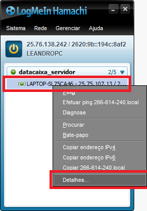 23- Na Estação, clique com botão direito no computador Servidor como mostra na imagem abaixo e clique em Detalhes.