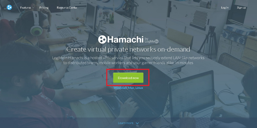 1- Acesse o site do Hamachi. Clique Aqui! Para realizar o download clique em Download now.