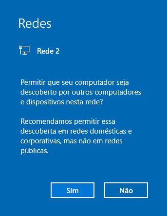 11- Caso apareça a mensagem Permitir que seu computador seja descoberto por outros computadores e dispositivos nesta rede? Clique em Sim.