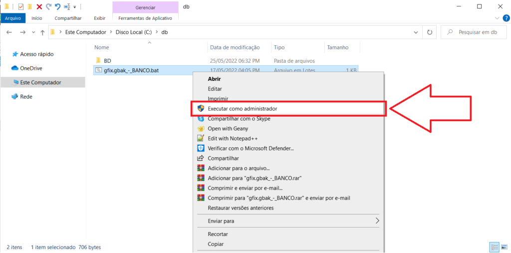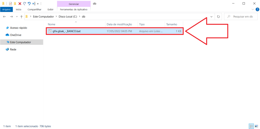 5- Abra a pasta db e cole o arquivo do Gfix. Clique Aqui! para baixar o arquivo gfix.gbak.