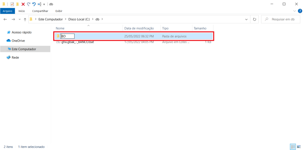 12- Dentro da pasta do sistema, abra a pasta BD e exclua o antigo arquivo BANCO.FDB, e cole o RESTAURADO.
