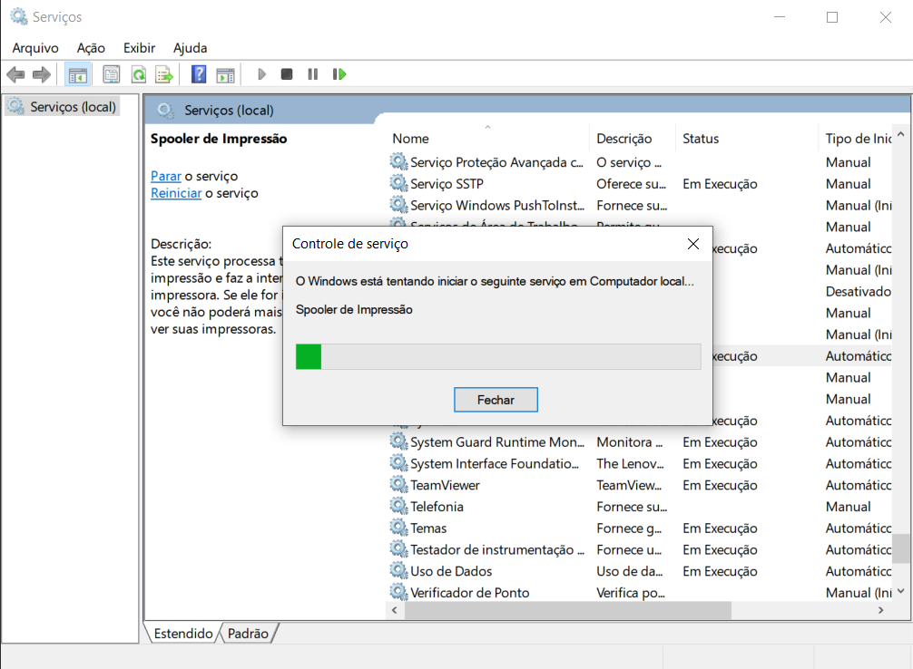 Pronto! O serviço de Spooler do Windows foi reiniciado.