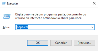 Digite nela em Abrir, ncpa.cpl e clique em OK.