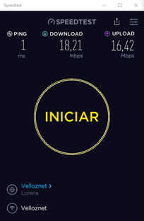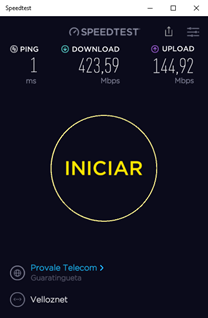 Este teste foi realizado por uma rede WiFi 2.4Ghz, veja que além da limitação da tecnologia neste local tem interferência e passou menos de 20 Mbps, temos 400 Mbps contratados.
