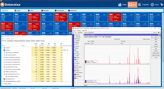 Esta imagem é a mesma do gráfico acima, com mais qualidade nos números, verifique na imagem que houve registro de uma maior utilização, porém foi por outros sistemas, o próprio Windows (atualização pequena) ou o sistema de monitoramento de rede, o registro de utilização entre o sistema Datacaixa Mobile e Datacaixa PDV é mínima.