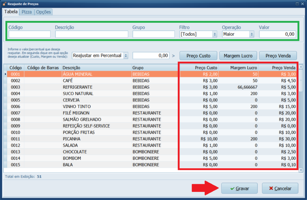 Pronto! Dessa forma vai conseguir reajustar os preços dos produtos cadastrados muito mais facilmente.