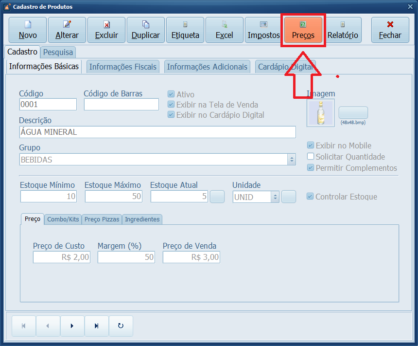 2- Clique em Preços.