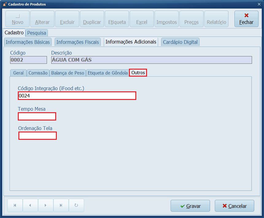 - Código de Integração (iFood etc.) – Este código serve para que o produto no PDV fique corretamente integrado aos aplicativos, como o iFood. Com o Código Integração definido, o sistema reconhece o item e o importa corretamente quando um pedido é feito pelo aplicativo. Confira aqui, como integrar o iFood no PDV.