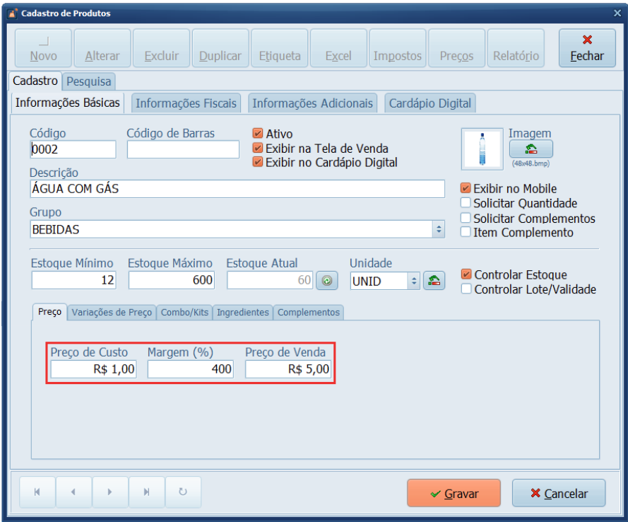 - Preço de Custo – É o valor que você pagou para comprar este produto.