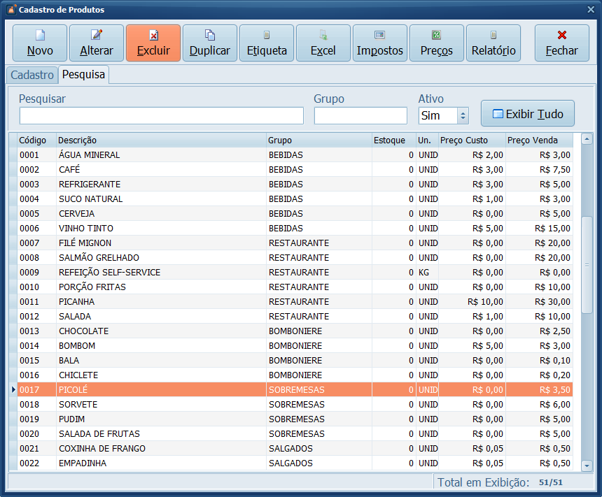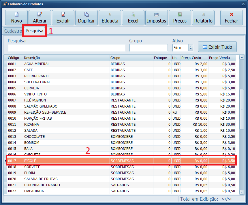 1- Acesse o Menu Gerencial e clique em Produtos.