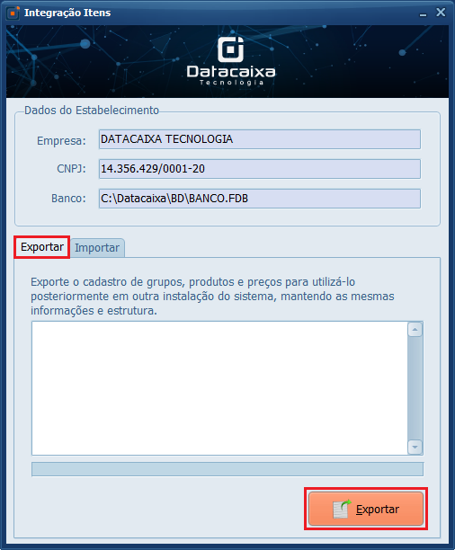 Neste tutorial, você aprenderá como utilizar a ferramenta Integração de Itens, um recurso que permite migrar todos os cadastros de produtos entre diferentes instalações do Sistema Datacaixa de forma segura. Essa solução é útil quando você precisa replicar os cadastros em uma filial, padronizar informações entre lojas ou começar uma nova instalação.