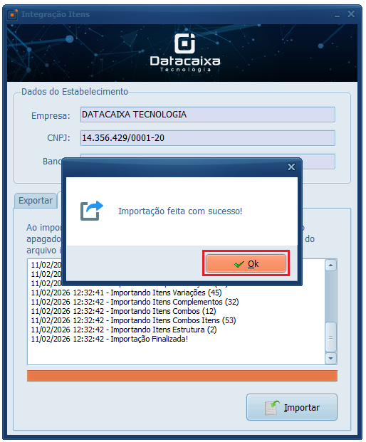 Pronto! A importação foi concluída com sucesso. Abra o sistema normalmente e verifique se os cadastros foram atualizados corretamente.