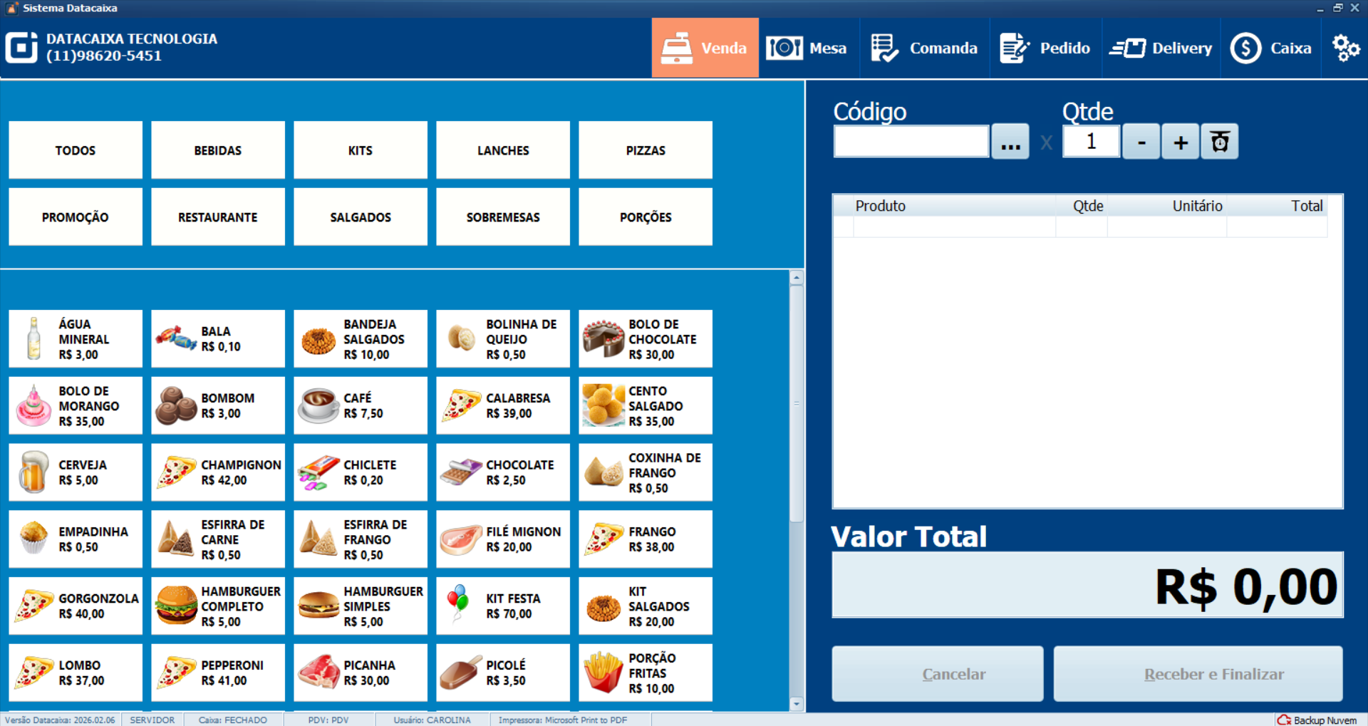 Na instalação de origem (Servidor), onde os cadastros já estão configurados e organizados, o sistema exporta todos os registros de produtos, grupos, imagens, complementos, ingredientes, variações de preço e combos.