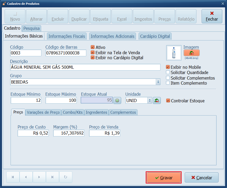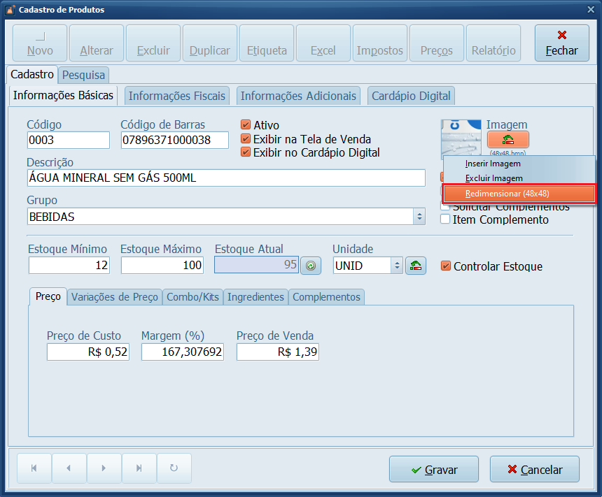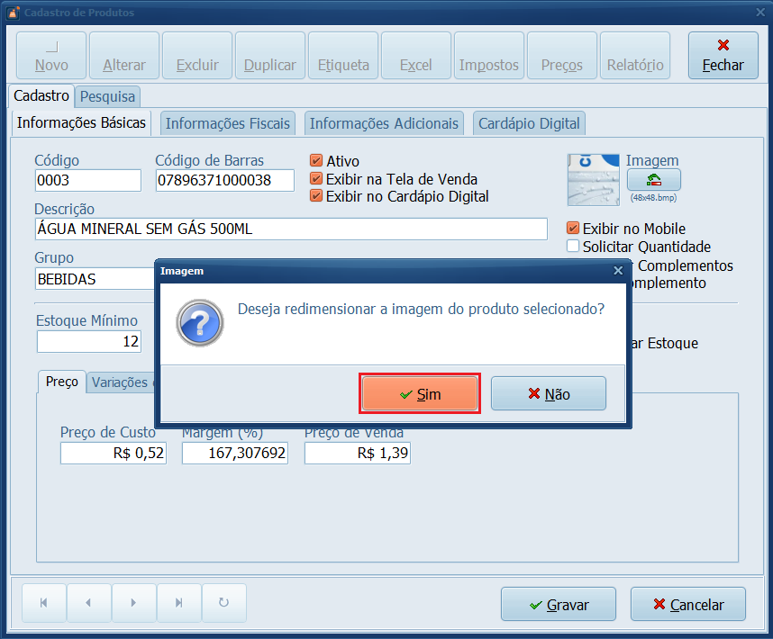 Pronto! Você inseriu e redimensionou a imagem com sucesso em um produto no Datacaixa PDV.
