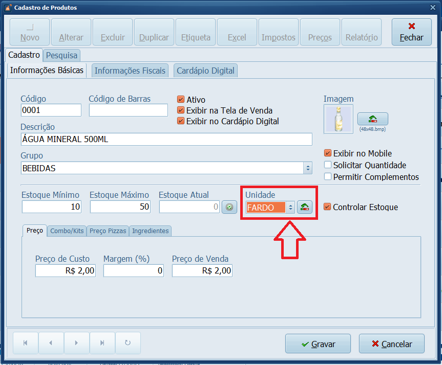 4- Clique em Unidade e escolha FARDO.