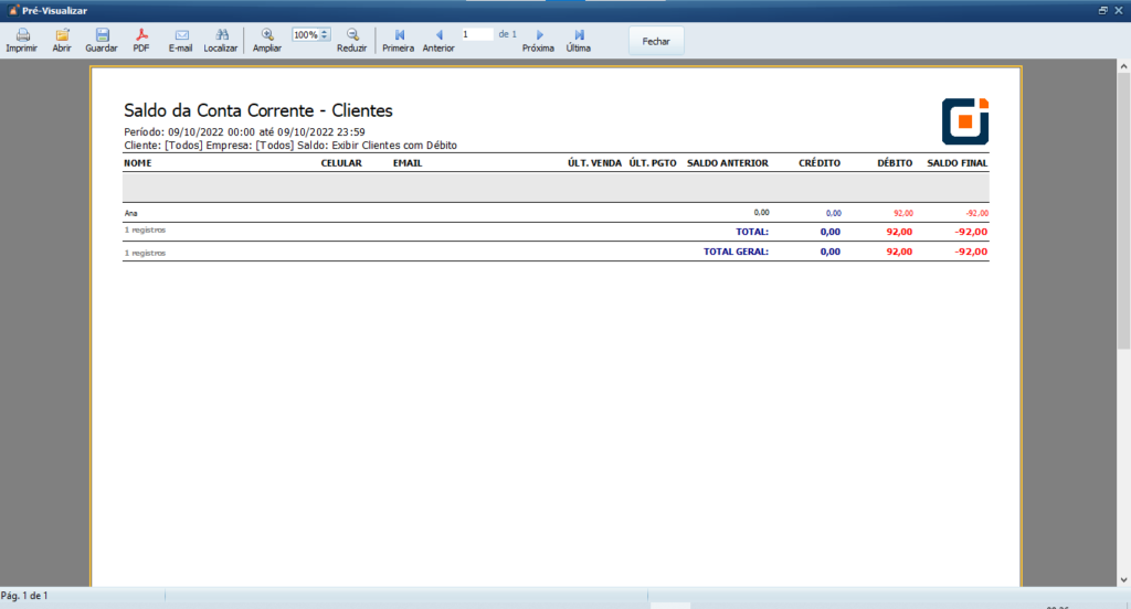 Pronto! Você verificou os clientes com saldo negativo no Sistema.