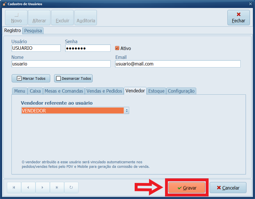 Caso utilize o Comanda Mobile será necessário informar o vendedor para todos os usuários, evitando problemas com algum usuário em específico.