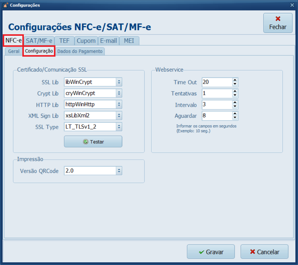 2- Em NFC-e, acesse a aba Configuração.