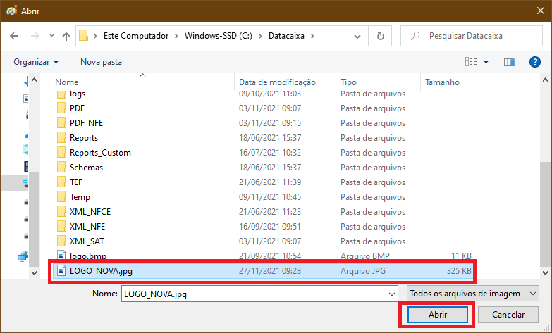 11- Selecione a nova logo e clique em Abrir.