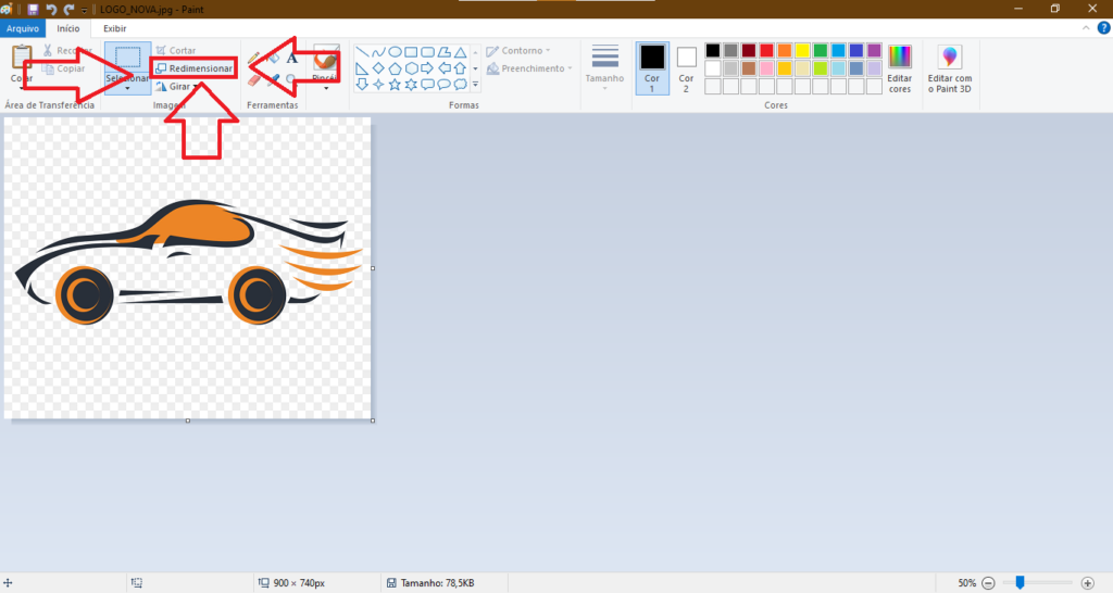 4- Com a imagem aberta, clique em Redimensionar.
