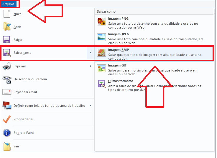 6- Vá ao Menu Arquivo > Salvar Como > Imagem BMP.