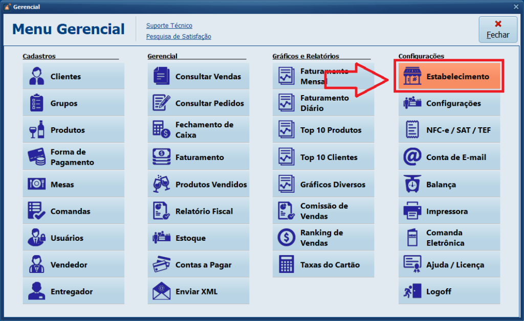 9- Clique em Estabelecimento.