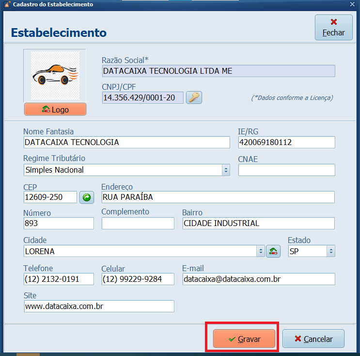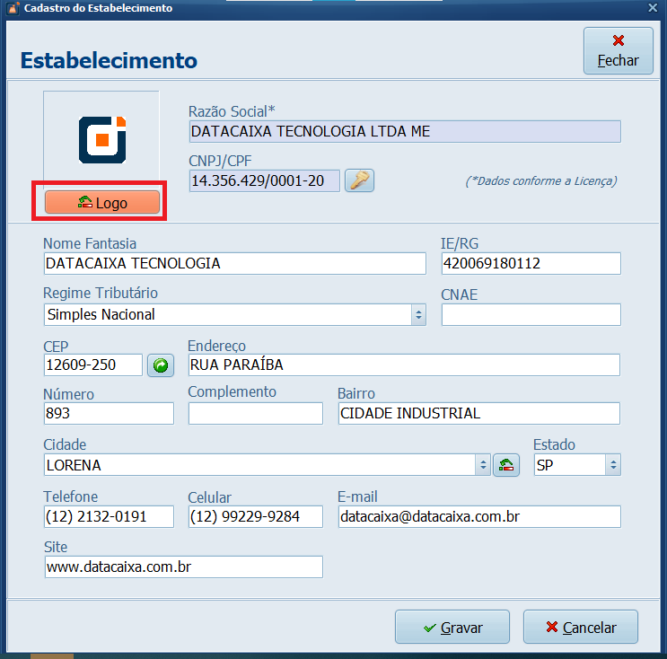Pronto! Seu logotipo foi inserido no Sistema.