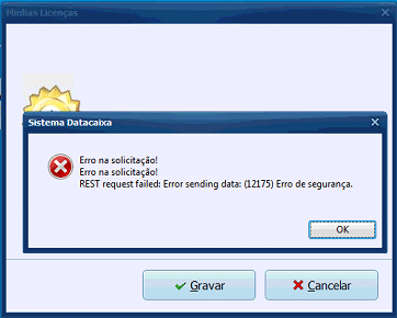 Erro: Erro na Solicitação! REST request failed: Erros sending (12175) Erro de segurança.