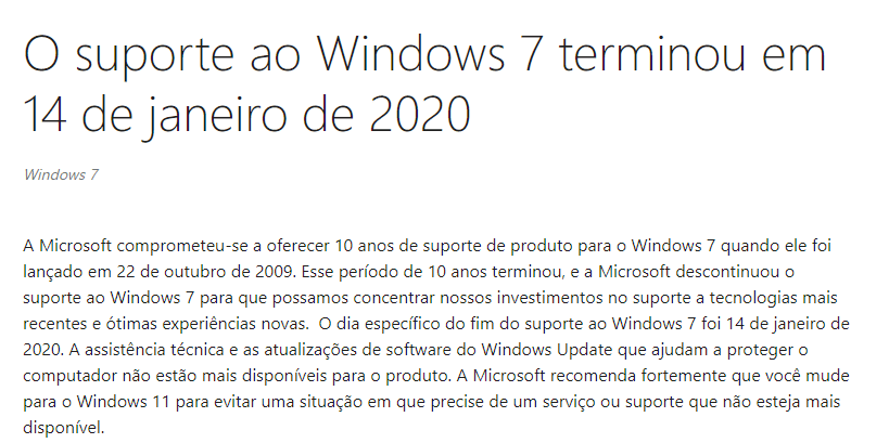 Anúncio Windows 7 – Fonte: https://support.microsoft.com/pt-br/windows/o-suporte-ao-windows-7-terminou-em-14-de-janeiro-de-2020-b75d4580-2cc7-895a-2c9c-1466d9a53962