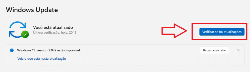 2- Clique na opção ‘Verificar se há atualizações’ para o Windows buscar e baixar as atualizações pendentes disponíveis.