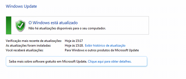 4- Após a instalação de todos os pacotes de atualização. Ao acessar o ‘Verificar se há atualizações‘ conforme o passo 1. É possível verificar se o Windows está atualizado.
