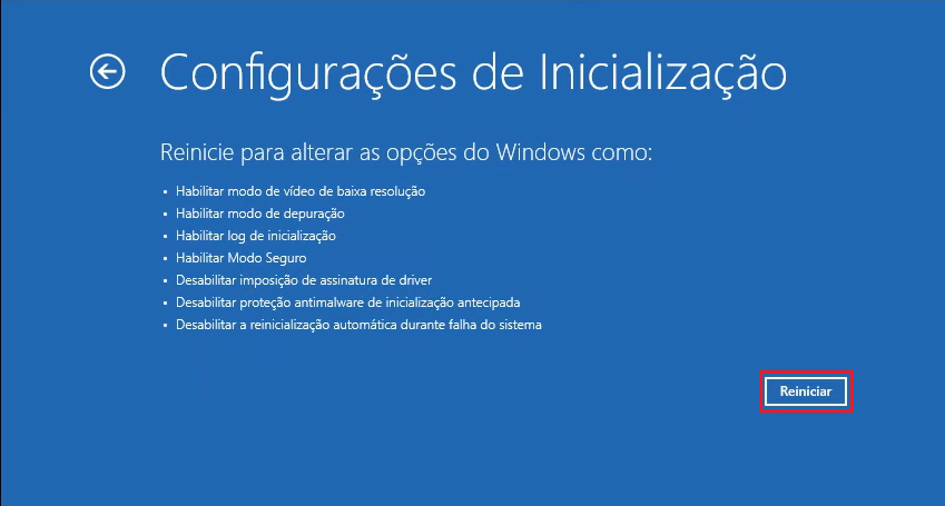 Pronto! O computador será reiniciado com a Imposição de Assinatura de Driver desativada, permitindo que você instale os drivers que deseja sem restrições.