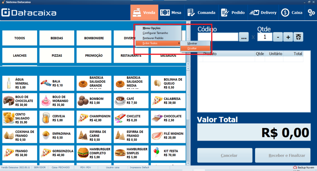 1- Clique com o botão direito na área dos grupos já cadastrados, clique em Exibir Todos e clique em Ocultar.