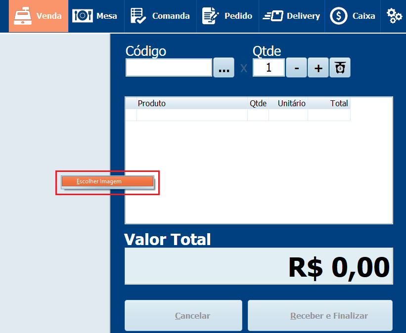 5- Clique com o botão direito do mouse em qualquer lugar da área cinza como na imagem e clique em Escolher Imagem.