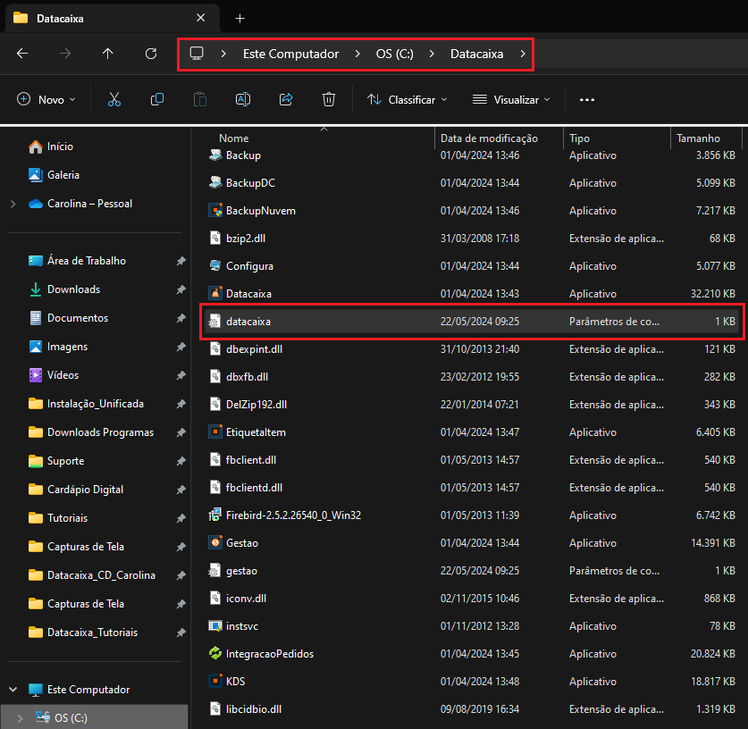 Local do Sistema: Meu Computador > C: > Datacaixa
