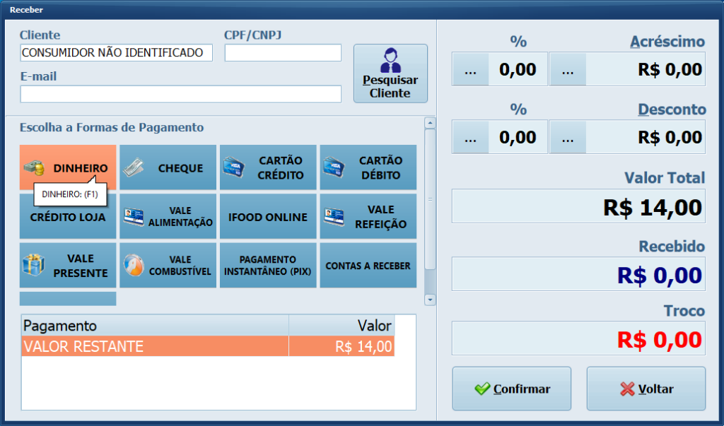 No Sistema Datacaixa PDV existem algumas teclas de atalho que podem ser utilizadas para agilizar processos, parando a seta do mouse sobre os botões do Sistema consegue obter informações destes atalhos como abaixo.