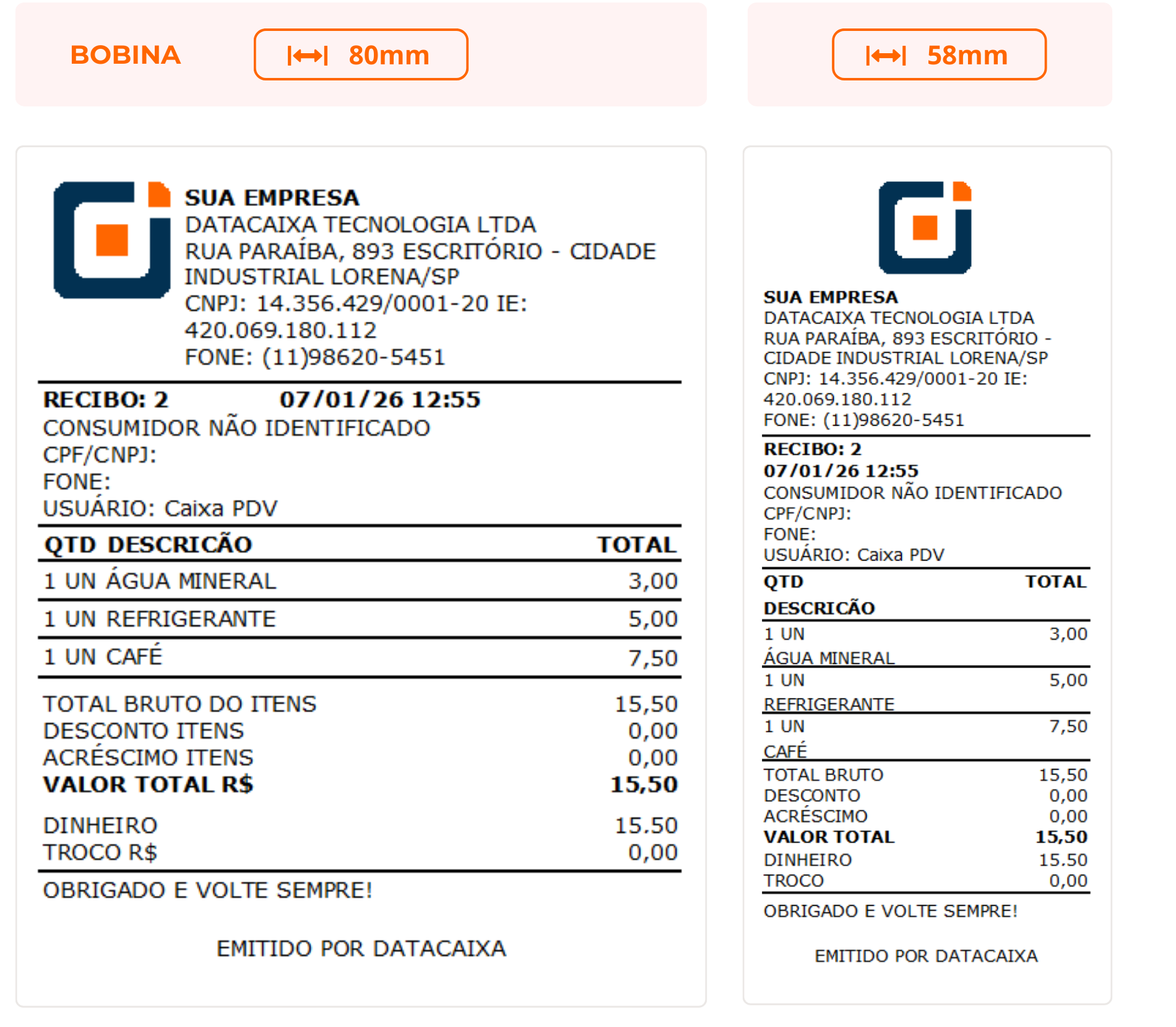 Neste tutorial, você aprenderá a configurar o tamanho da impressão dos cupons no Sistema Datacaixa PDV. Essa opção de ajuste existe para cenários específicos, como troca de impressora, alteração do tipo de bobina ou necessidade de ajuste fino no layout.