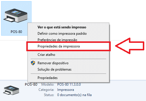 2- Clique com o botão direito sobre sua impressora utilizada no Caixa e clique em Propriedades da impressora.