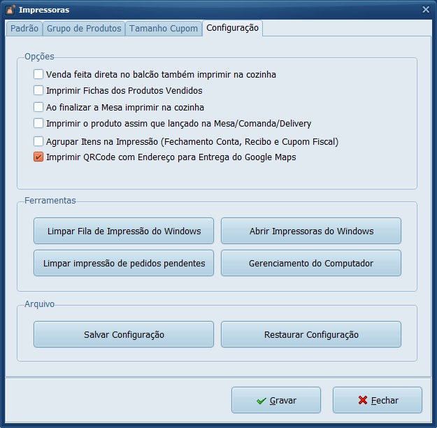 6- Na aba Configuração estão algumas das configurações mais avançadas relacionadas a impressão.