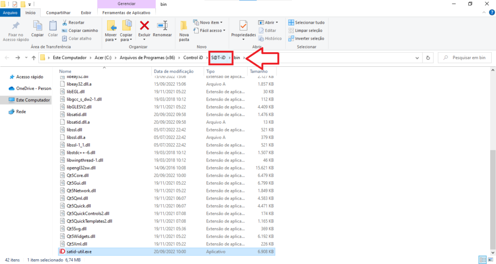 2- Em alguns modelos poderá encontrar a DLL diretamente neste local onde abriu o local do arquivo, ou dentro de uma pasta LIB, neste modelo específico precisa voltar uma pasta clicando onde está destacado na imagem em S@T-iD.