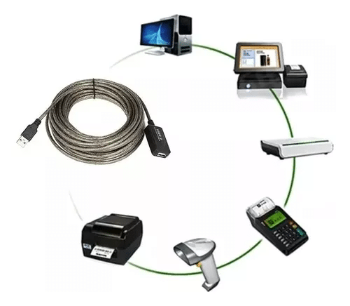 Utilizando um cabo extensor USB amplificado é possível uma conexão distante com impressoras e outros dispositivos ao computador. É possível adquirir um cabo com 10 metros, 20 metros ou mais, utilizando o equipamento no local desejado dentro do estabelecimento com boa qualidade, rapidez e sem intermitência.