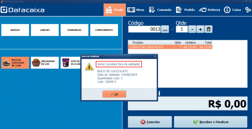 Pronto! Agora, ao lançar um produto fora da validade, será exibido um alerta durante a venda.