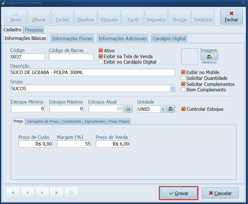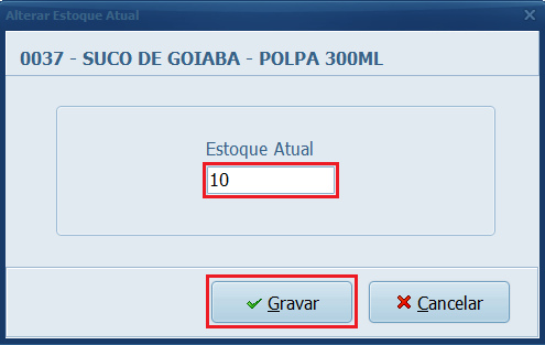 5- Informe a quantidade disponível em seu estoque e clique em Gravar.