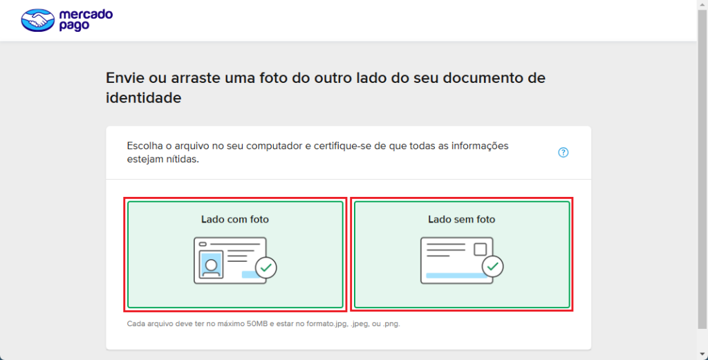 7- Envie ou arraste a foto da frente e do verso do seu documento de identidade.