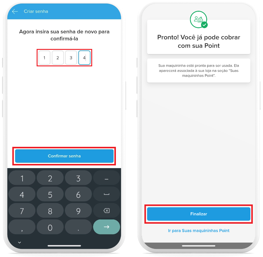 12- Insira novamente a senha criada > Confirmar senha. Logo após, toque em Finalizar.