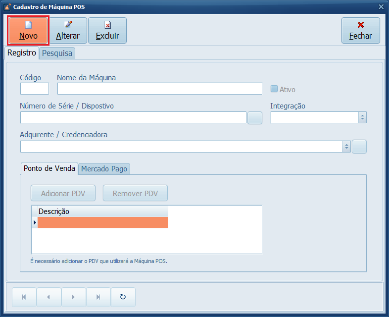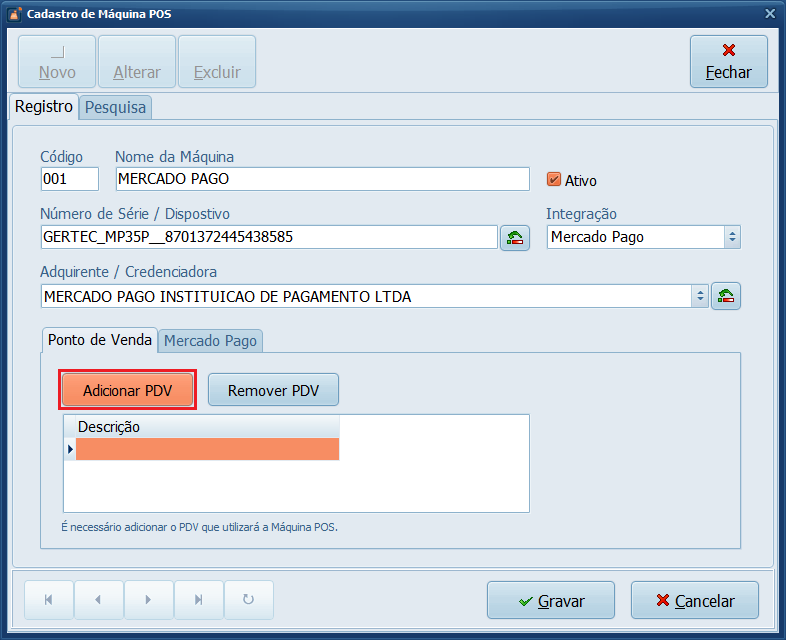 28- Dê um duplo clique para adicionar o PDV que usará a Maquininha do Mercado Pago. Você pode adicionar mais de um PDV, se desejar.