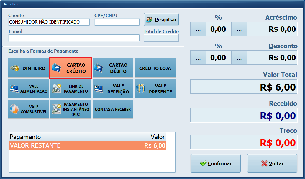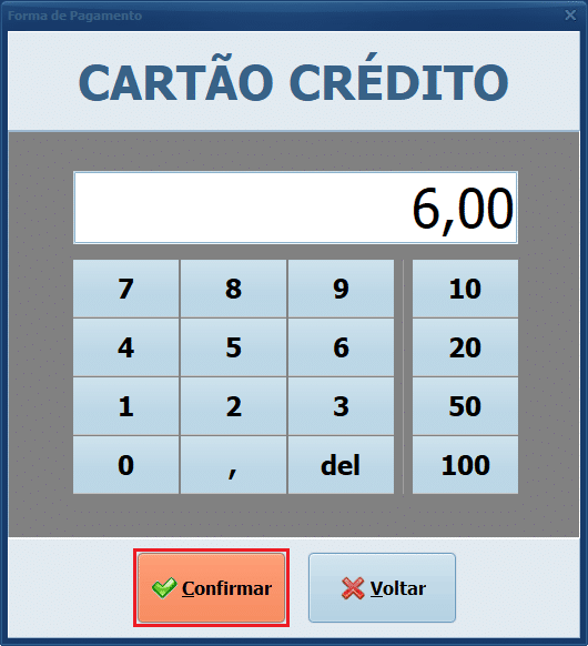 2- Selecione Cartão Crédito. Em seguida, clique em Confirmar.