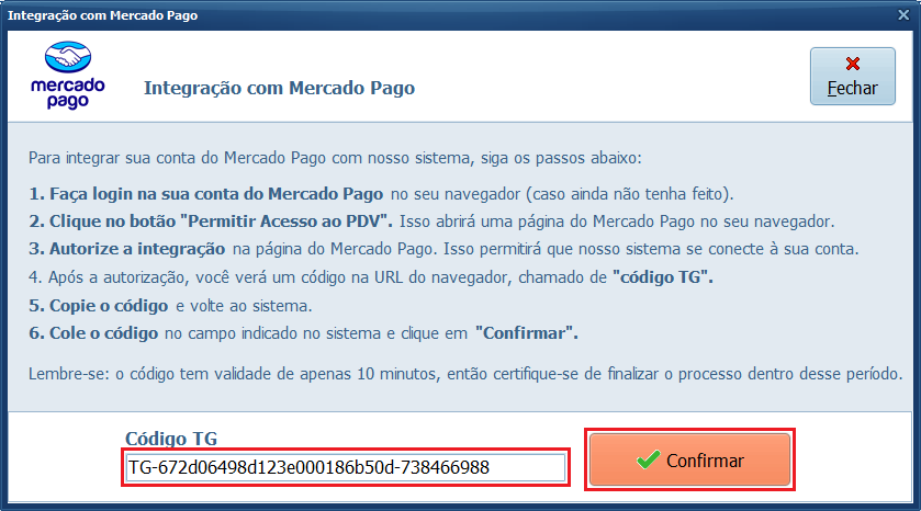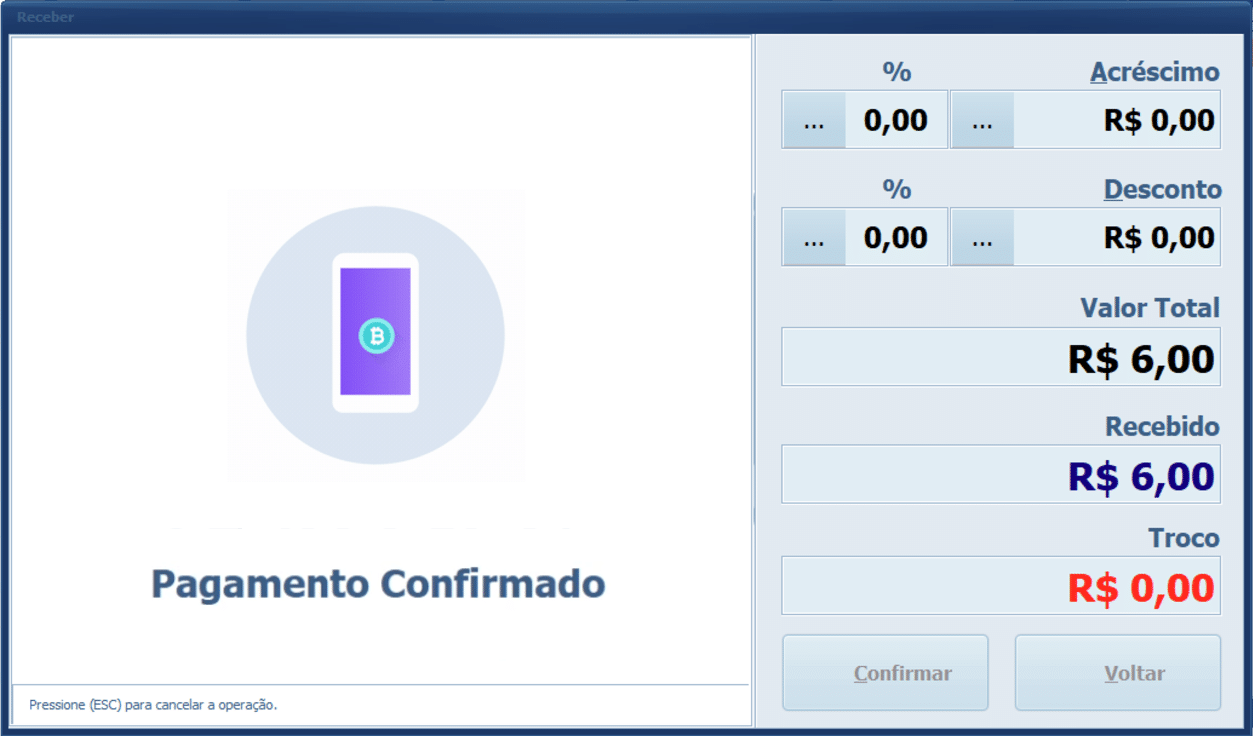 Pronto, o sistema irá confirmar automaticamente o pagamento e finalizar a venda.