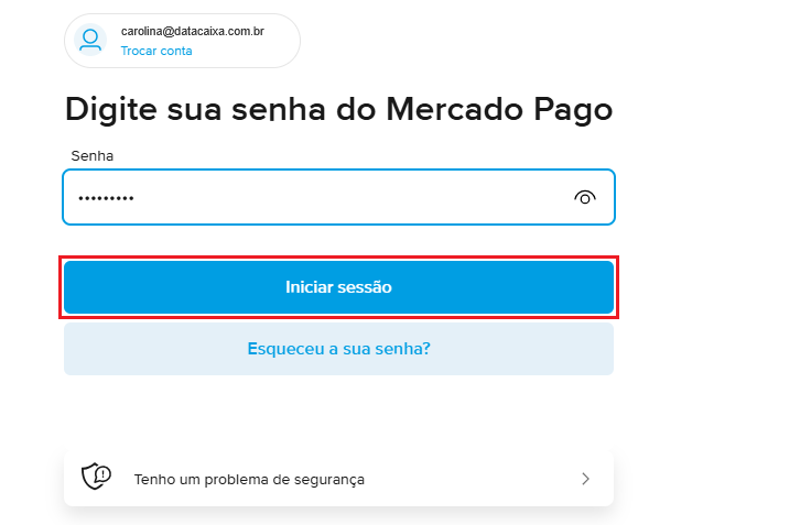 1- Acesse aqui a sua conta do Mercado Pago. Se ainda não estiver com a sessão iniciada, insira seu e-mail ou telefone e logo depois clique em Continuar. Em seguida, digite sua senha e clique em Iniciar sessão.