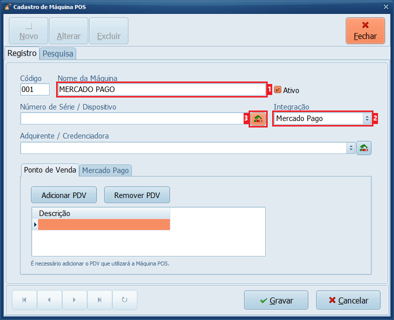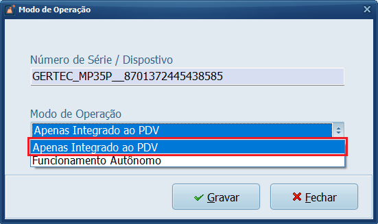 30- Selecione a opção Apenas Integrado ao PDV > Gravar.